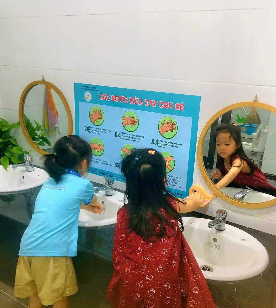 Các bé không chỉ học được tầm quan trọng của việc giữ gìn vệ sinh, mà còn biết cách rửa tay đúng cách để bảo vệ sức khỏe của bản thân