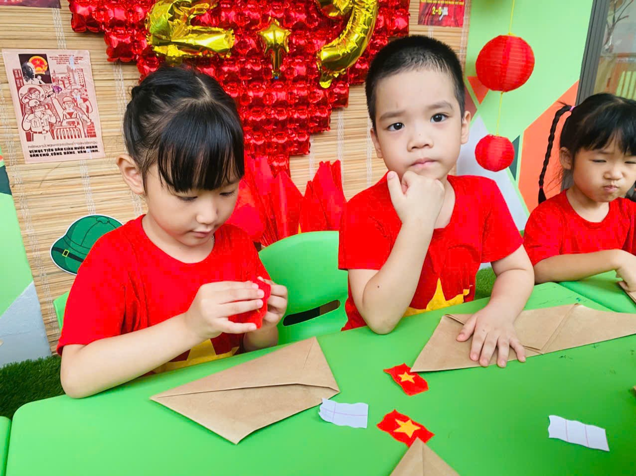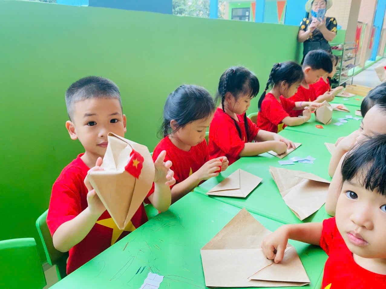 Các bạn nhỏ lớp Little Angle đã có một hoạt động thật vui và ý nghĩa: cùng nhau gấp mũ tai bèo và khoác lên mình sắc áo Tổ quốc.Hoạt động không chỉ rèn sự khéo léo mà còn giúp các con thêm tự hào, yêu mến lịch sử và đất nước Việt Nam.