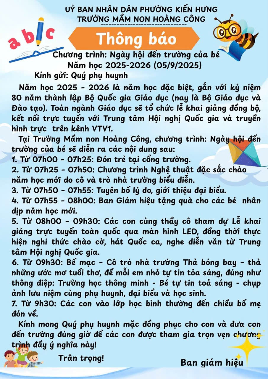 CHƯƠNG TRÌNH NGÀY HỘI ĐẾN TRƯỜNG CỦA BÉ