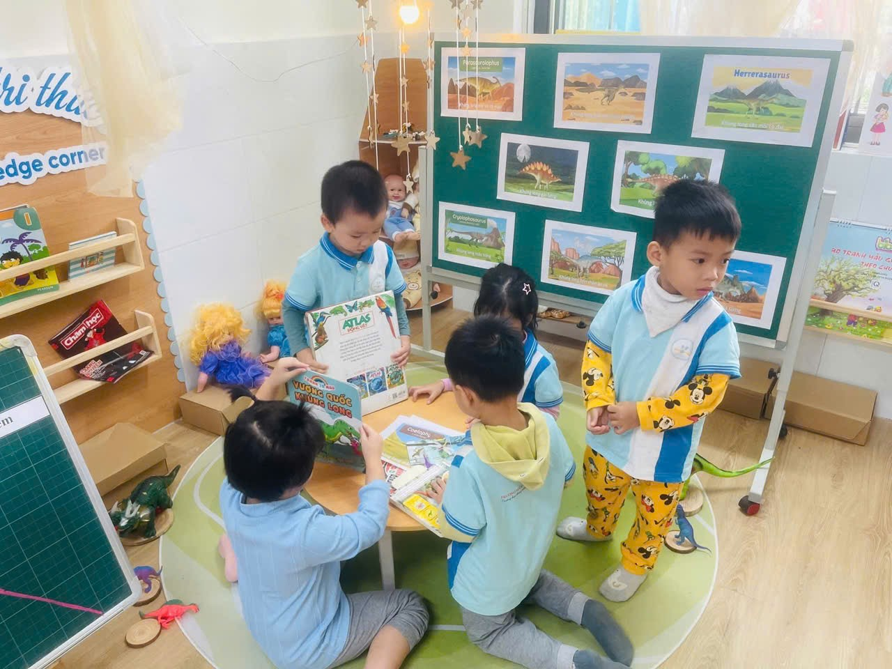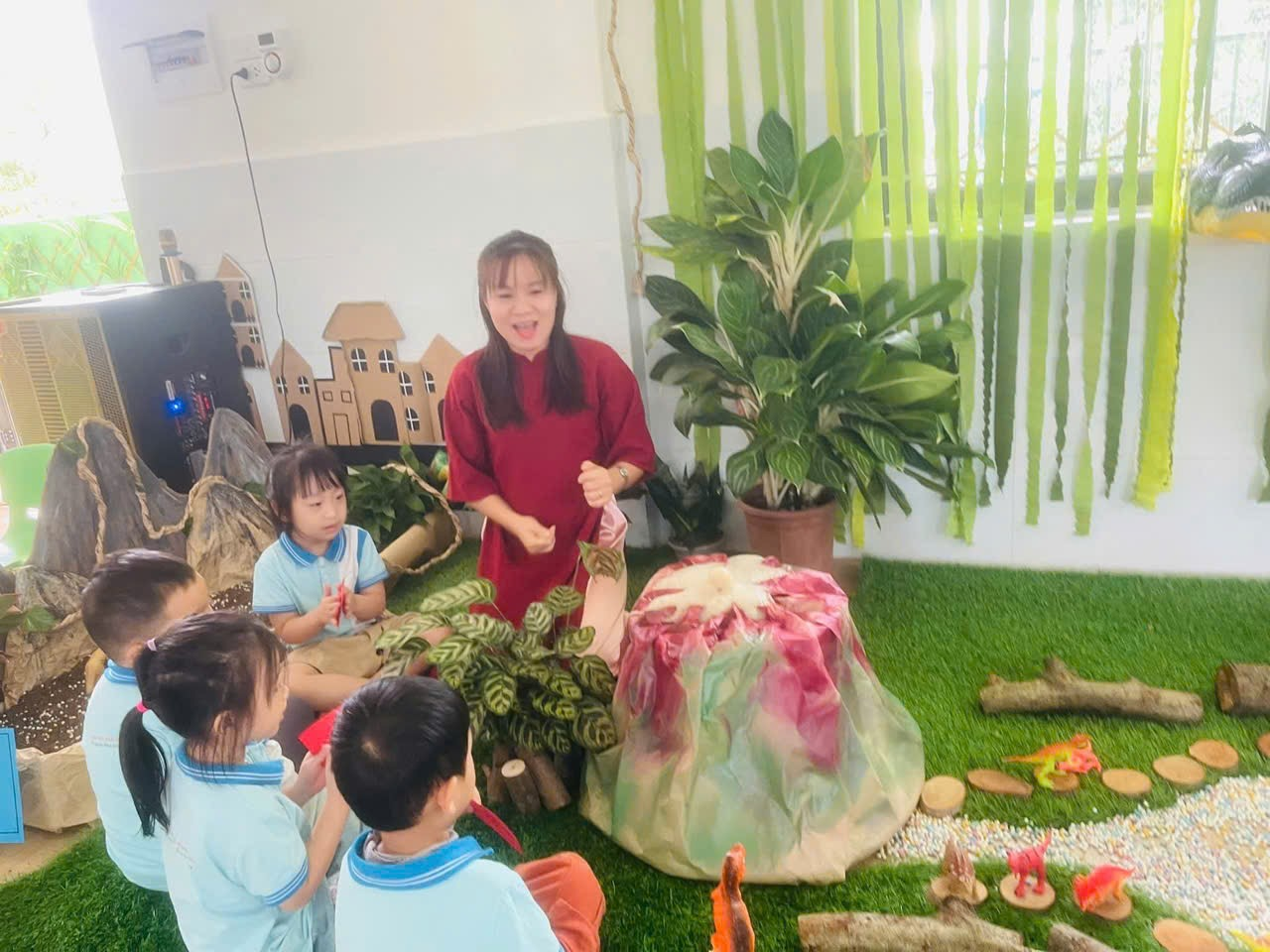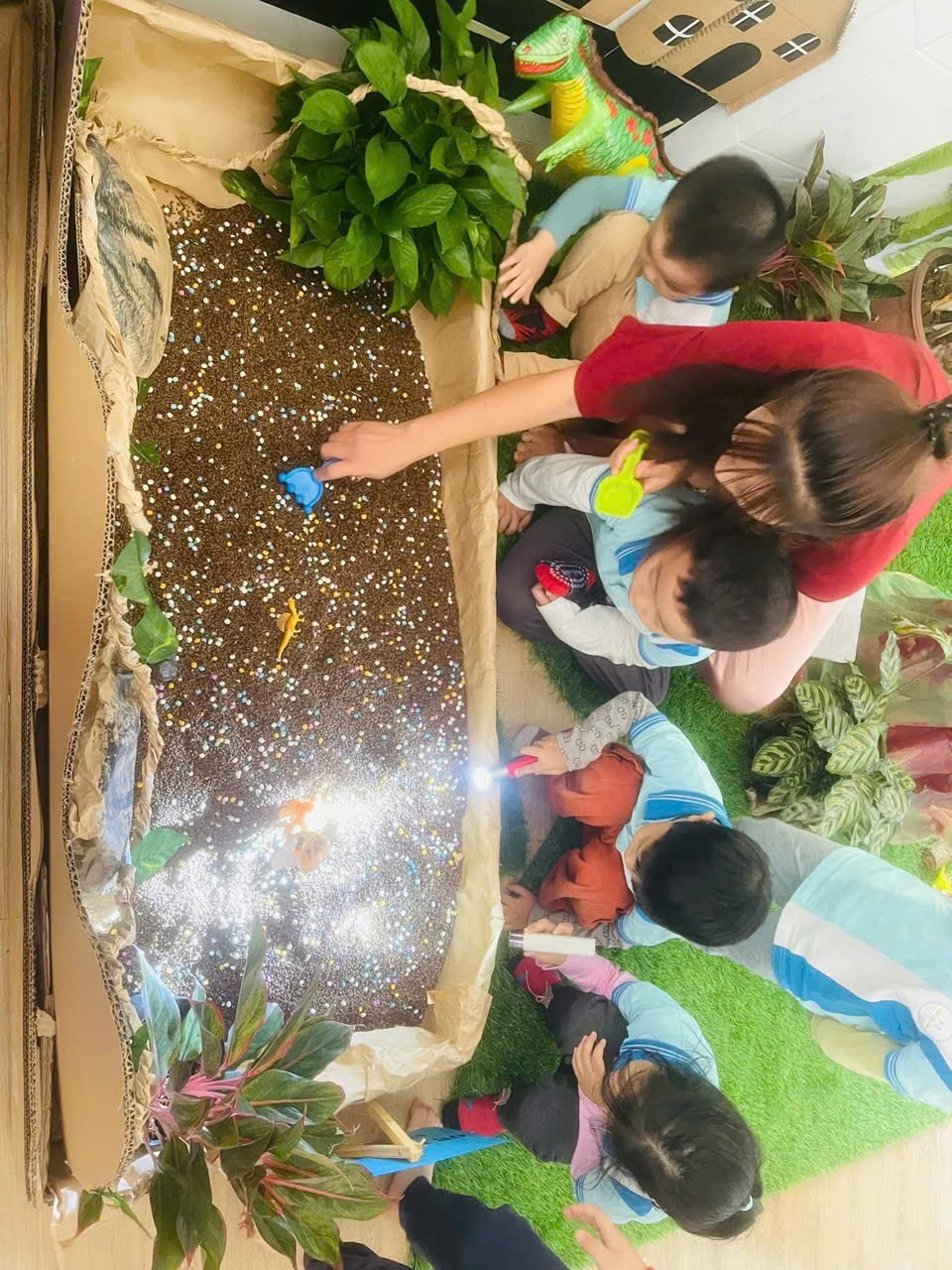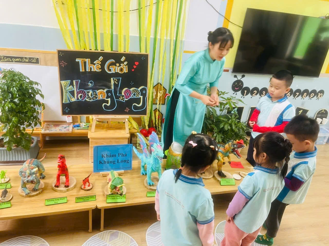 Hoạt động Khám phá khủng long: Không chỉ là những bài học về lịch sử, các cô giáo đã biến giờ học trở thành một cuộc phiêu lưu kỳ thú, đưa các em vào thế giới của những chú khủng long khổng lồ, kích thích trí tưởng tượng và khám phá kiến thức mới.