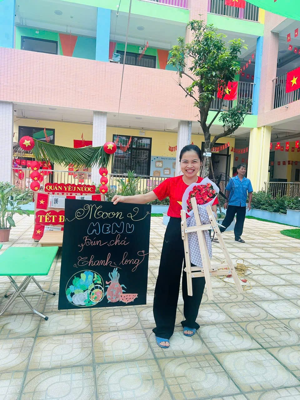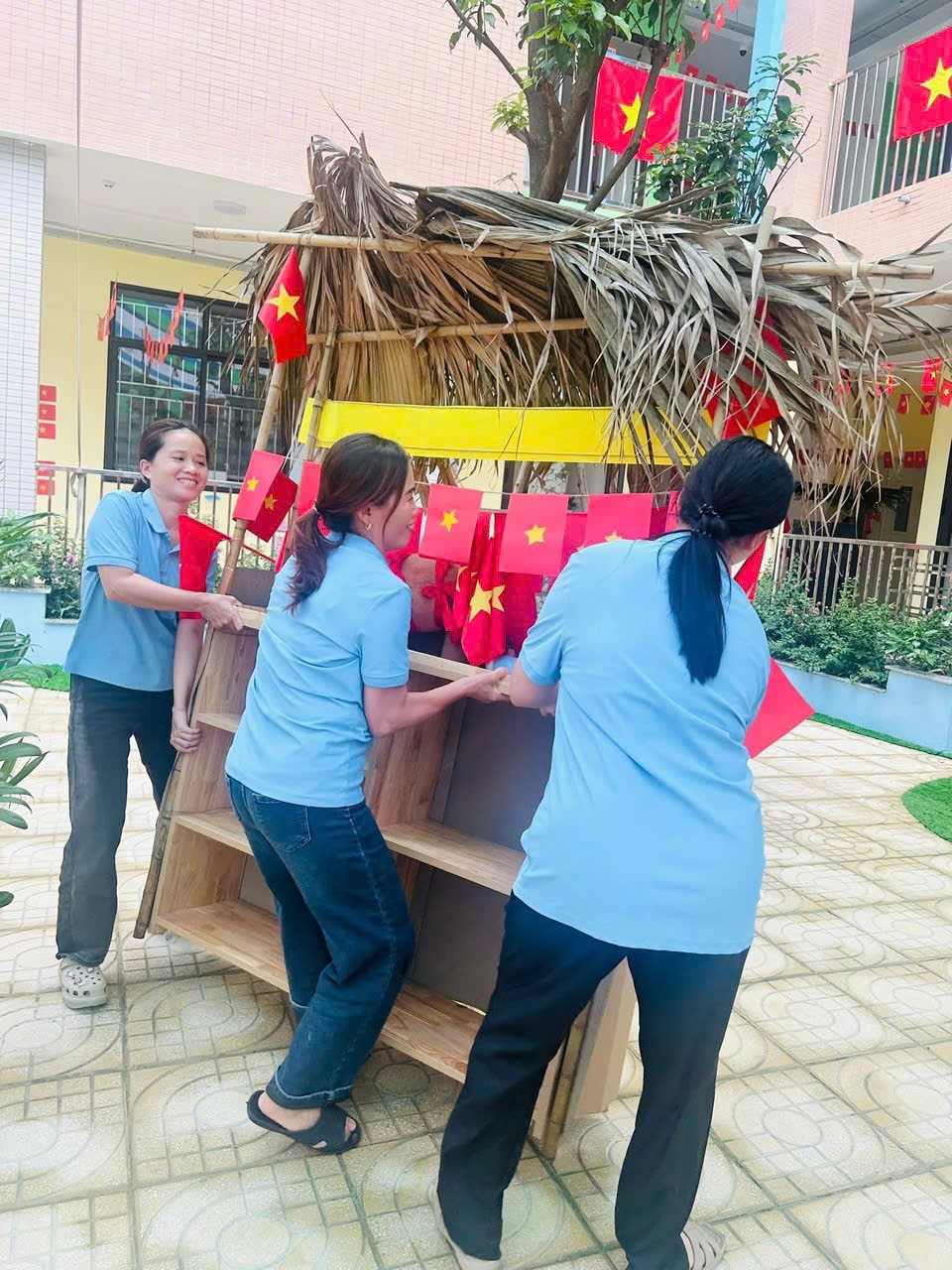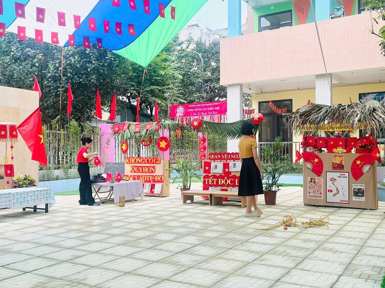 Không khí những ngày này tại Trường Mầm non Hoàng Công thật rộn ràng và đầy sắc màu! Các cô giáo, phụ huynh và nhân viên nhà trường đang tất bật chuẩn bị cho Workshop Ẩm thực Việt – một hoạt động đặc biệt chào mừng 80 năm Quốc khánh 2/9 Nước Cộng Hoà Xã Hội Chủ Nghĩa Việt Nam. Nhằm lan tỏa tình yêu quê hương đất nước đến với các bạn nhỏ trường MN Hoàng Công. Những gian hàng được dựng nên với phong cách gần gũi, tái hiện hình ảnh làng quê Việt Nam xưa và nay, rực rỡ cờ đỏ sao vàng, trang trí bằng lá cọ, tre nứa, cùng nhiều hình ảnh ý nghĩa gắn liền với lịch sử dân tộc.
