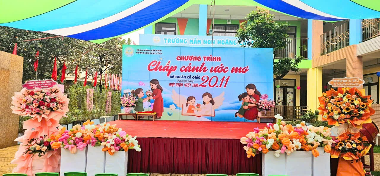 Loa Loa Loa .... mọi thứ đã sẵn sàng chỉ còn 30phút nữa Chương trình “Chắp cánh ước mơ – Bé tri ân thầy cô” nhân ngày Nhà giáo Việt Nam 20/11 và Chương trình nghệ thuật đặc sắc thông qua câu chuyện Âm nhạc: “Hạt giống ước mơ” được diễn ra. Trường MN Hoàng Công kính mời quý phụ huynh đón xem!