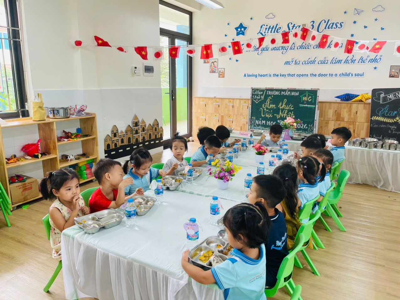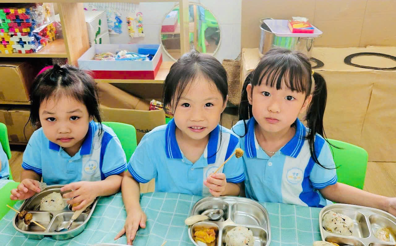 Các bé vừa được thưởng thức món ngon, vừa cảm nhận tình yêu thương ấm áp từ gia đình và nhà trường.