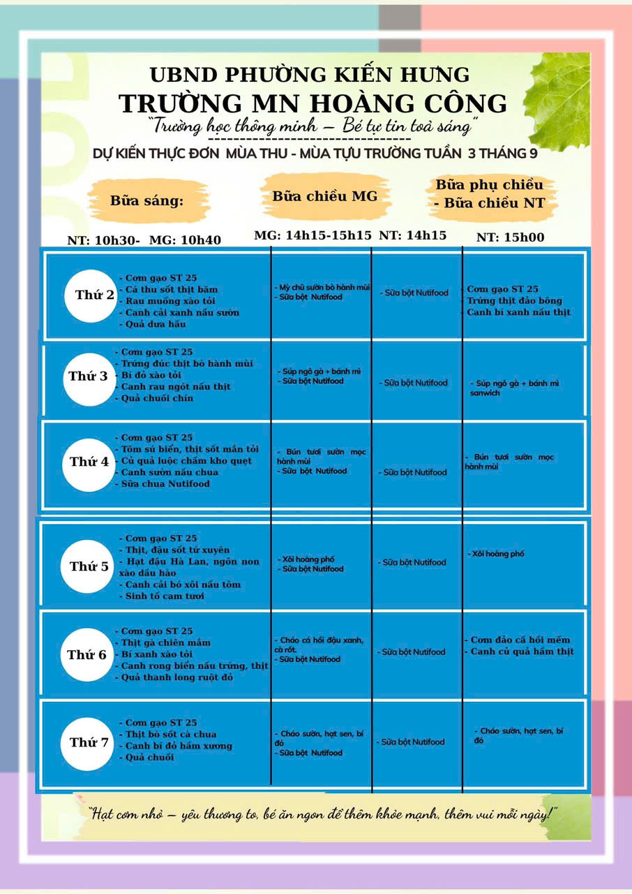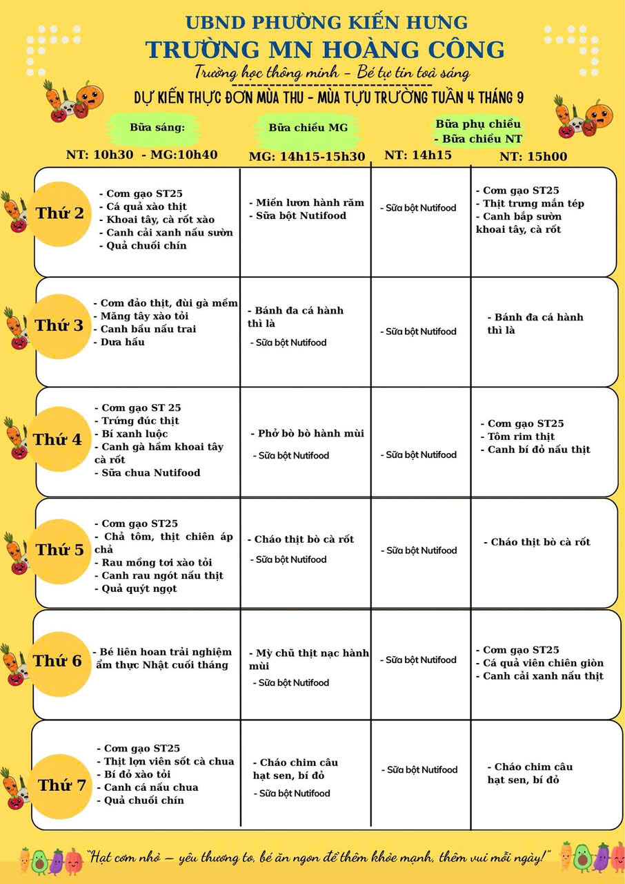 Tạm biệt hè rực rỡ – Xin chào mùa thu dịu dàng và bữa ăn thật ngon lành tại Trường Mầm non Hoàng Công!