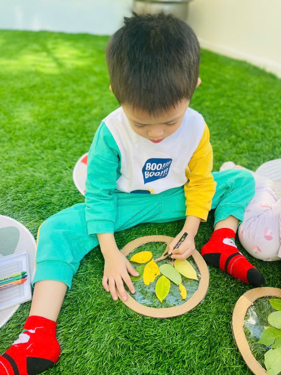 Hoạt động ngoài trời cùng bé yêu Little Star 2, kết hợp với hoạt động nghệ thuật nhằm phát triển thẩm mỹ cho trẻ. Trẻ được quan sát, tưởng tượng, sáng tạo và thể hiện cảm xúc của mình về thế giới xung quanh. Việc lựa chọn và sử dụng hợp lý nguyên vật liệu tự nhiên có vai trò rất quan trọng. Bởi nó giúp cho trẻ được hoạt động, được khám phá và tạo ra những sản phẩm mà mình mong muốn, từ đó giúp cho trẻ thích thú, say mê hơn.