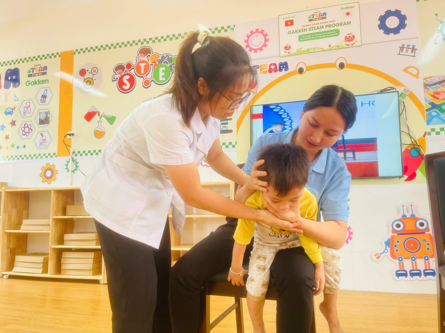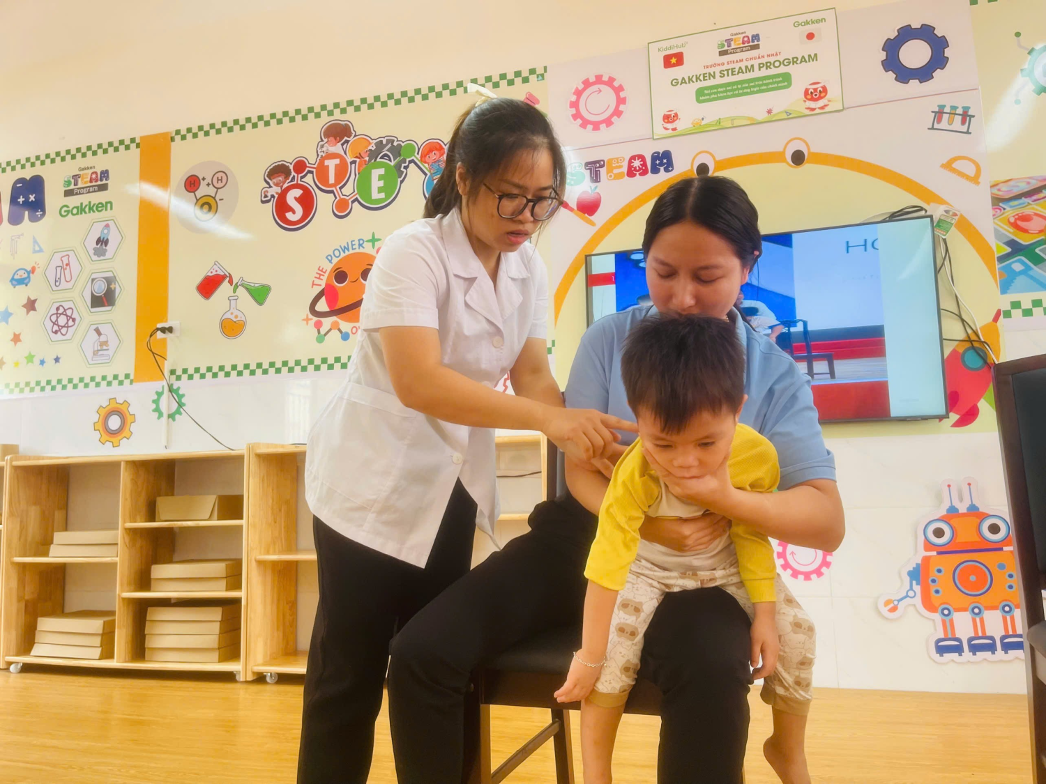 Vơi sự hướng dẫn của đ/c Nguyễn Thị Mến - nhân viên y tế, các giáo viên đã được trang bị những kiến thức cần thiết về cách nhận diện các triệu chứng, kỹ năng sơ cứu cơ bản và các biện pháp xử lý tình huống khẩn cấp. Điều này không chỉ giúp bảo vệ sự an toàn cho các bé mà còn tạo sự yên tâm cho phụ huynh khi gửi gắm con em đến trường.