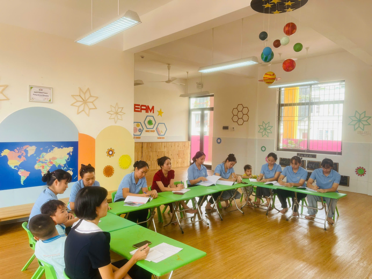Buổi tập huấn diễn ra trong không khí hăng say và tích cực. Các cô giáo không chỉ học cách sơ cứu mà còn chia sẻ kinh nghiệm và học hỏi lẫn nhau.