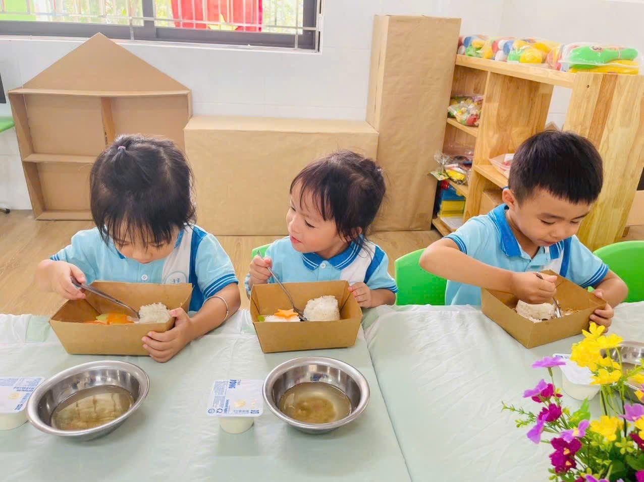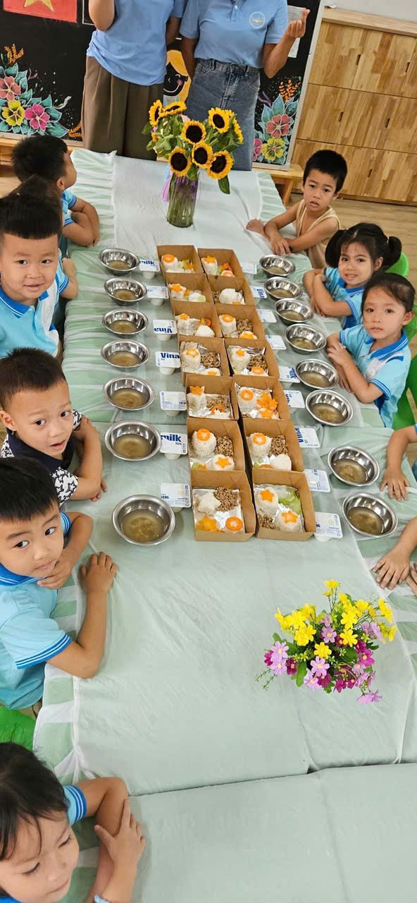 Các bạn nhỏ đã ăn rất ngon miệng và vô cùng hào hứng khi thưởng thức từng món ăn. Nụ cười rạng rỡ trên gương mặt các bé chính là phần thưởng cho sự chăm sóc và tâm huyết mà các cô cấp dưỡng và các cô giáo đã dành cho bữa ăn này!