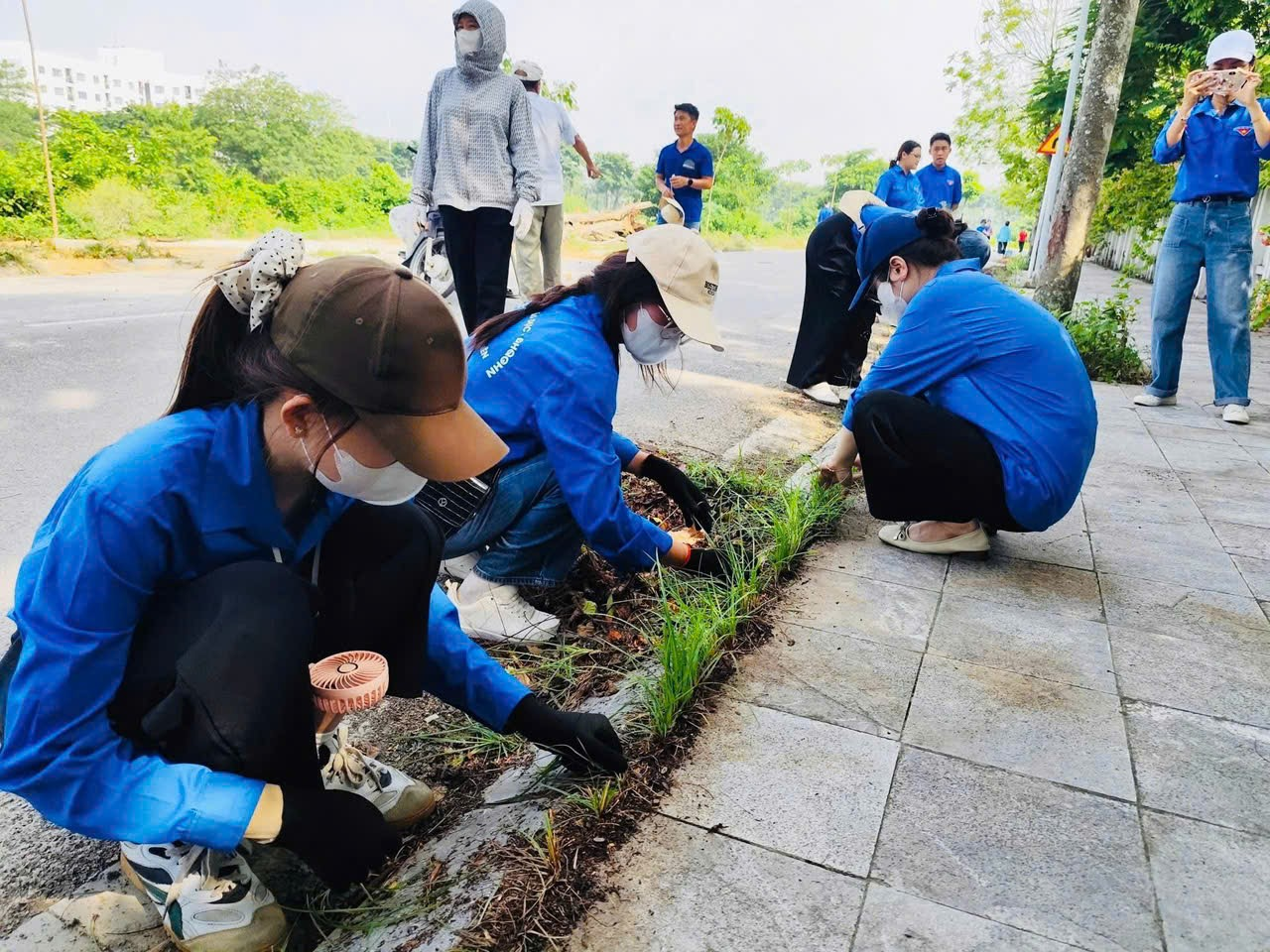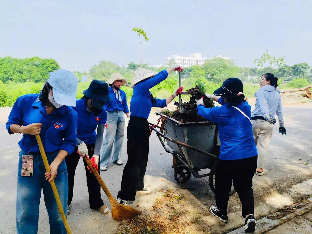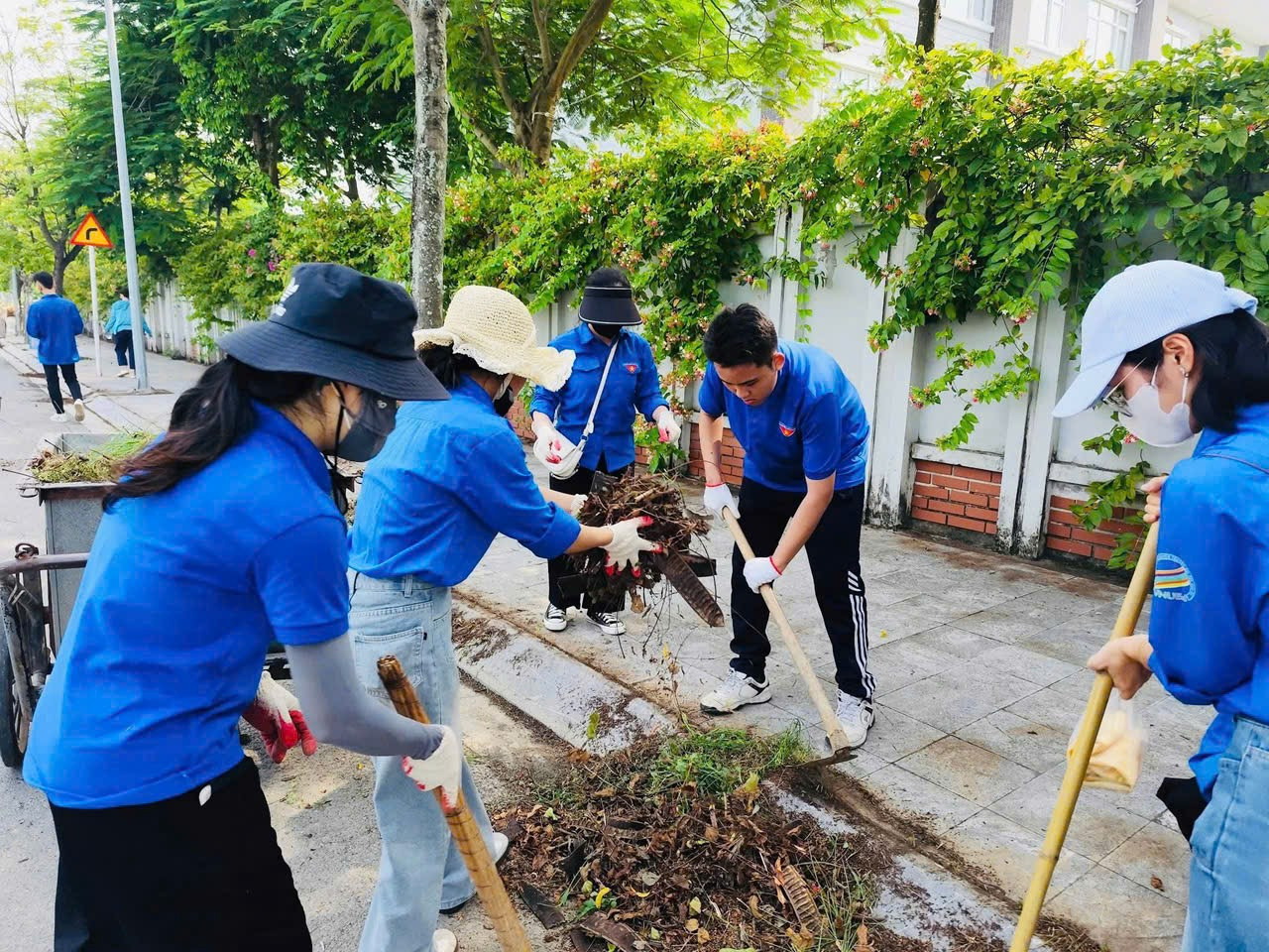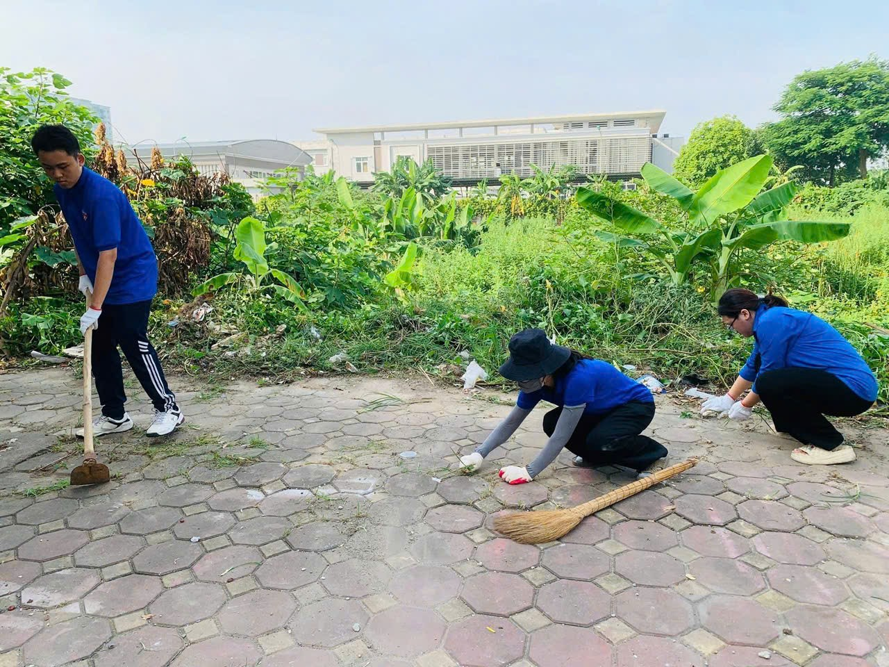 - Nhổ cỏ, thu gom rác thải, phát quang bụi rậm;